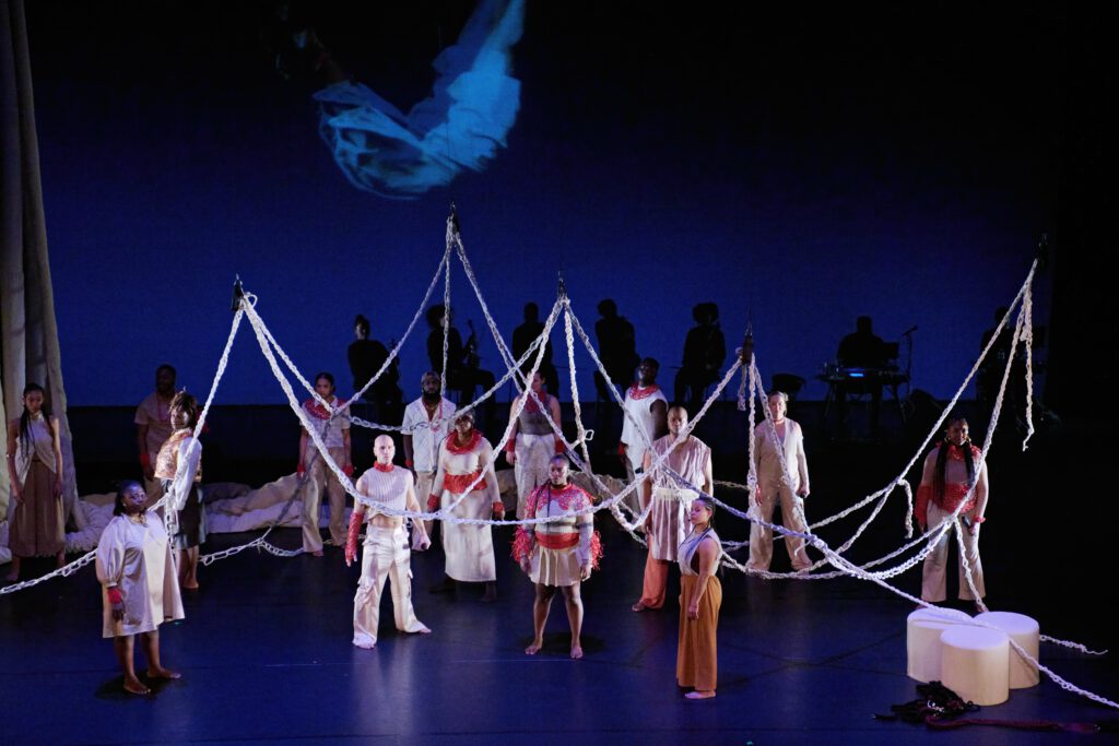 Aus dicken Seilen haben die Darsteller*innen im Laufe der knapp 100minütigen Vorstellung ein Netz gewebt, das am Ende an den Bühnenhimmel gezogen wird. War es das also mit der Solidarität? Kann der Rassismus unwidersprochen, ungehindert fortschreiten? Der letzte auf den Hintergrund projizierte Satz stimmt nachdenklich: „Ich bin müde“. Zweimal steht er da. Die „Opera of Hope“ ist noch bis zum 24. Januar auf Kampnagel zu sehen.