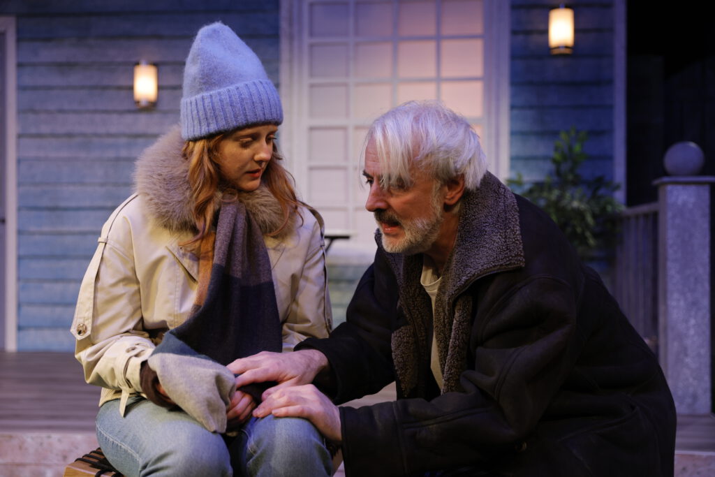 Die Anfangsszene von „Proof“ setzt die Hauptfigur Catherine in einen fragilen Zustand, der sich in Clifford Deans psychologisch genau geführter Inszenierung noch steigert. Was ist los mit dieser jungen Frau? Ist sie ausgelaugt durch die jahrelange Pflege? Ist sie selbst ein mathematisches Genie? Oder zeigt sie bereits Anzeichen der Krankheit ihres Vaters? 2001 wurde das Stück des US-amerikanischen Dramatikers und Regisseurs David Auburn mit dem Pulitzer Preis ausgezeichnet und vier Jahre später von John Madden mit Anthony Hopkins und Gwyneth Paltrow verfilmt. „Proof“ baut auf die differenzierte Zeichnung seiner Figuren, daraus entsteht seine Spannung. Dean hat das Glück, wie so oft im English Theatre ein hochqualifiziertes Ensemble zur Verfügung zu haben. Casbarras Catherine ist anfangs eine genervte junge Frau, die den Geburtstags-Champagner aus der Flasche trinkt, sarkastische Sprüche drauf hat und irgendwie überhaupt keinen Bock mehr hat, schon gar nicht auf ihre Schwester Claire. Die ist bei Katherine Bristow ihr genaues Gegenteil: elegant, zugewandt und manchmal etwas zu aufdringlich mit ihren Fragen. Allerdings fragt man sich im Laufe der knapp zweieinhalbstündigen Inszenierung (inkl. Pause), ob hier nicht doch Fürsorge und schwesterliche Liebe die eigentlichen Motive sind. Auch Catherine verändert sich, wird plötzlich zugewandter und lässt sich sogar mit Hal ein. Dewhurst zeigt ihn als übereifrigen, oft linkischen Streber, lässt aber im Unklaren, ob seine Recherchen tatsächlich der Universität oder vielleicht doch eher seiner eigenen Karriere dienen sollen. Richard Ings als Vater Robert taucht in den beiden Rückblenden auf: Vier Jahre zuvor war er noch ein anerkannter Professor im Ruhestand, der nur ungern seine Tochter Catherine zum Studium in eine andere Stadt ziehen ließ, ein Jahr später sitzt er verwirrt in kurzärmeligen T-Shirt bei Minusgraden auf der Terrasse und schreibt wie besessen in ein schwarzes Heft. Dieses Heft findet Hal kurz nach der Beerdigung in Roberts Schreibtisch, Catherine hat ihm dafür den Schlüssel gegeben. Es enthält den bahnbrechenden mathematischen Beweis. Aber konnte ihn Robert in seinem Zustand noch verfassen? Oder war es Catherine? Tja…